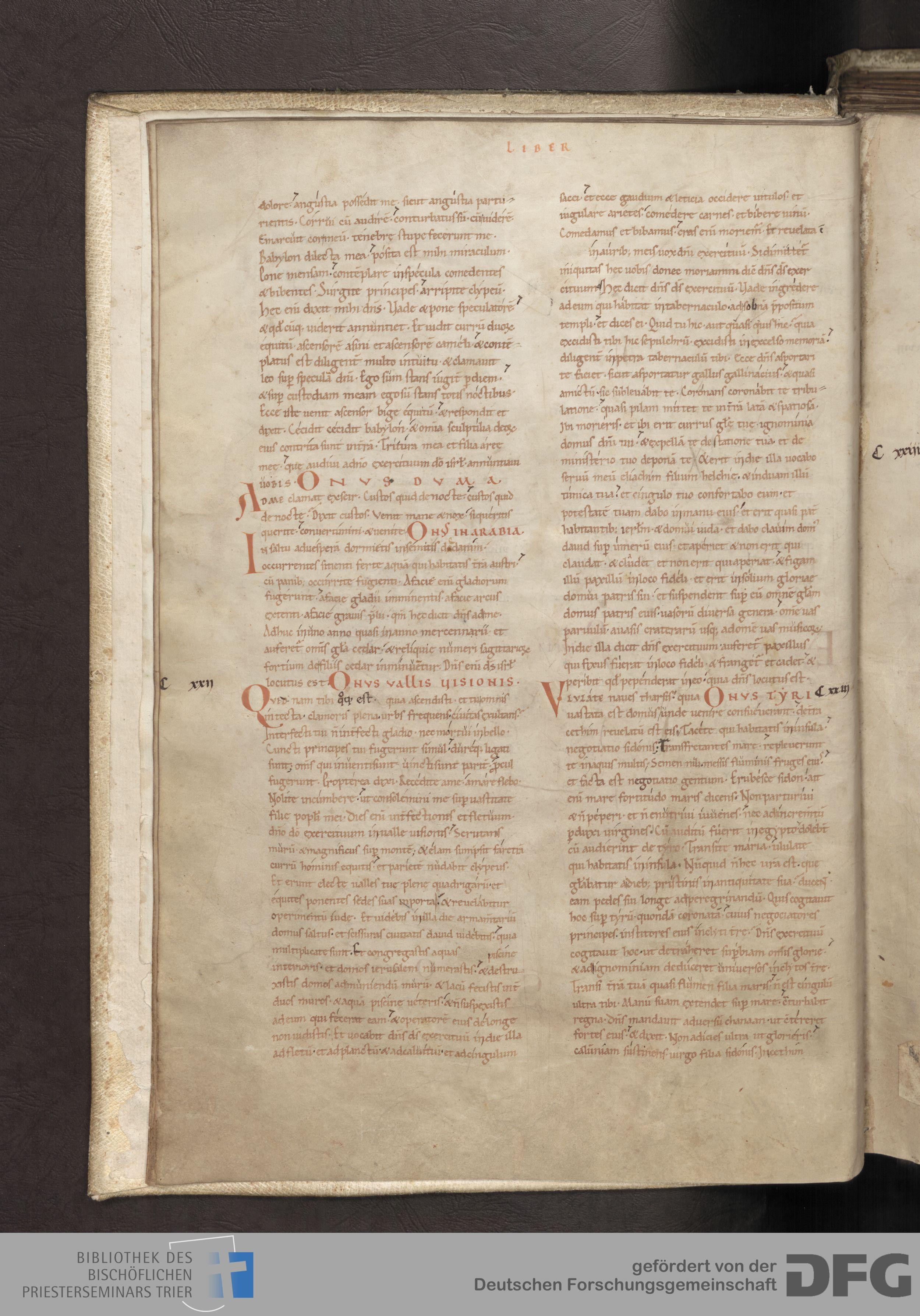 - TextGrid Repository (2017). Bibliothek des Bischöflichen Priesterseminars, Hs. 1. Inhalte. Bibliothek des Bischöflichen Priesterseminars Trier Hs. 1. Bibel aus St. Matthias/Altes Testament. Blatt 5v. Blatt 5v. Virtuelles Skriptorium St. Matthias. Bibliothek des Bischöflichen Priesterseminars Trier. https://hdl.handle.net/11378/0000-0006-0D6B-5