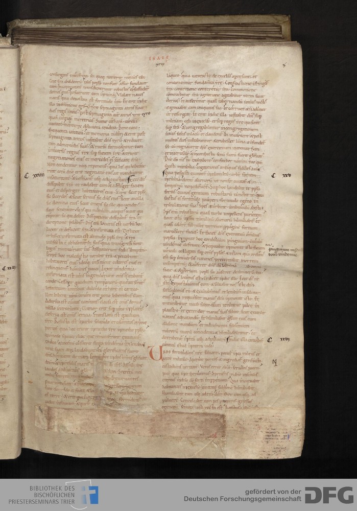 - TextGrid Repository (2017). Bibliothek des Bischöflichen Priesterseminars, Hs. 1. Inhalte. Bibliothek des Bischöflichen Priesterseminars Trier Hs. 1. Bibel aus St. Matthias/Altes Testament. Blatt 6r mit Fragment. Blatt 6r mit Fragment. Virtuelles Skriptorium St. Matthias. Bibliothek des Bischöflichen Priesterseminars Trier. https://hdl.handle.net/11378/0000-0006-0D6D-3