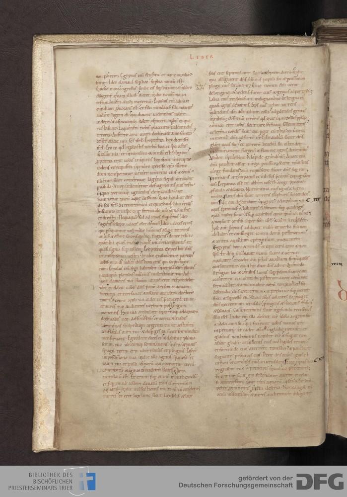 - TextGrid Repository (2017). Bibliothek des Bischöflichen Priesterseminars, Hs. 1. Inhalte. Bibliothek des Bischöflichen Priesterseminars Trier Hs. 1. Bibel aus St. Matthias/Altes Testament. Blatt 7v. Blatt 7v. Virtuelles Skriptorium St. Matthias. Bibliothek des Bischöflichen Priesterseminars Trier. https://hdl.handle.net/11378/0000-0006-0D73-B