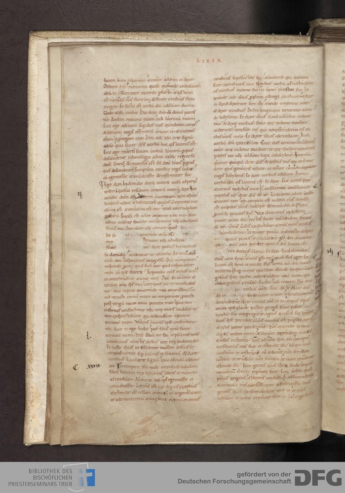 - TextGrid Repository (2017). Bibliothek des Bischöflichen Priesterseminars, Hs. 1. Inhalte. Bibliothek des Bischöflichen Priesterseminars Trier Hs. 1. Bibel aus St. Matthias/Altes Testament. Blatt 9v. Blatt 9v. Virtuelles Skriptorium St. Matthias. Bibliothek des Bischöflichen Priesterseminars Trier. https://hdl.handle.net/11378/0000-0006-0D7B-3