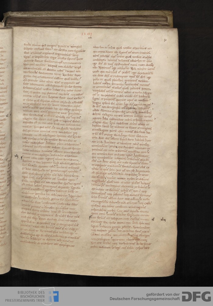 - TextGrid Repository (2017). Bibliothek des Bischöflichen Priesterseminars, Hs. 1. Inhalte. Bibliothek des Bischöflichen Priesterseminars Trier Hs. 1. Bibel aus St. Matthias/Altes Testament. Blatt 10r. Blatt 10r. Virtuelles Skriptorium St. Matthias. Bibliothek des Bischöflichen Priesterseminars Trier. https://hdl.handle.net/11378/0000-0006-0D7D-1