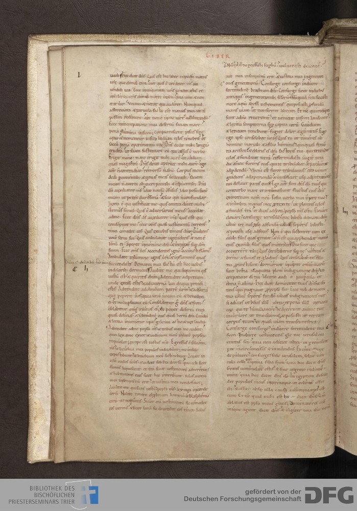 - TextGrid Repository (2017). Bibliothek des Bischöflichen Priesterseminars, Hs. 1. Inhalte. Bibliothek des Bischöflichen Priesterseminars Trier Hs. 1. Bibel aus St. Matthias/Altes Testament. Blatt 12v. Blatt 12v. Virtuelles Skriptorium St. Matthias. Bibliothek des Bischöflichen Priesterseminars Trier. https://hdl.handle.net/11378/0000-0006-0D87-4