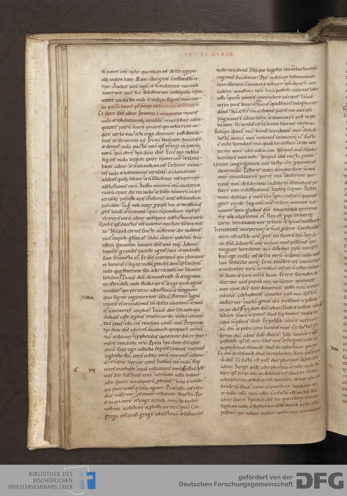 - TextGrid Repository (2017). Bibliothek des Bischöflichen Priesterseminars, Hs. 1. Inhalte. Bibliothek des Bischöflichen Priesterseminars Trier Hs. 1. Bibel aus St. Matthias/Altes Testament. Blatt 19v. Blatt 19v. Virtuelles Skriptorium St. Matthias. Bibliothek des Bischöflichen Priesterseminars Trier. https://hdl.handle.net/11378/0000-0006-0DA3-4