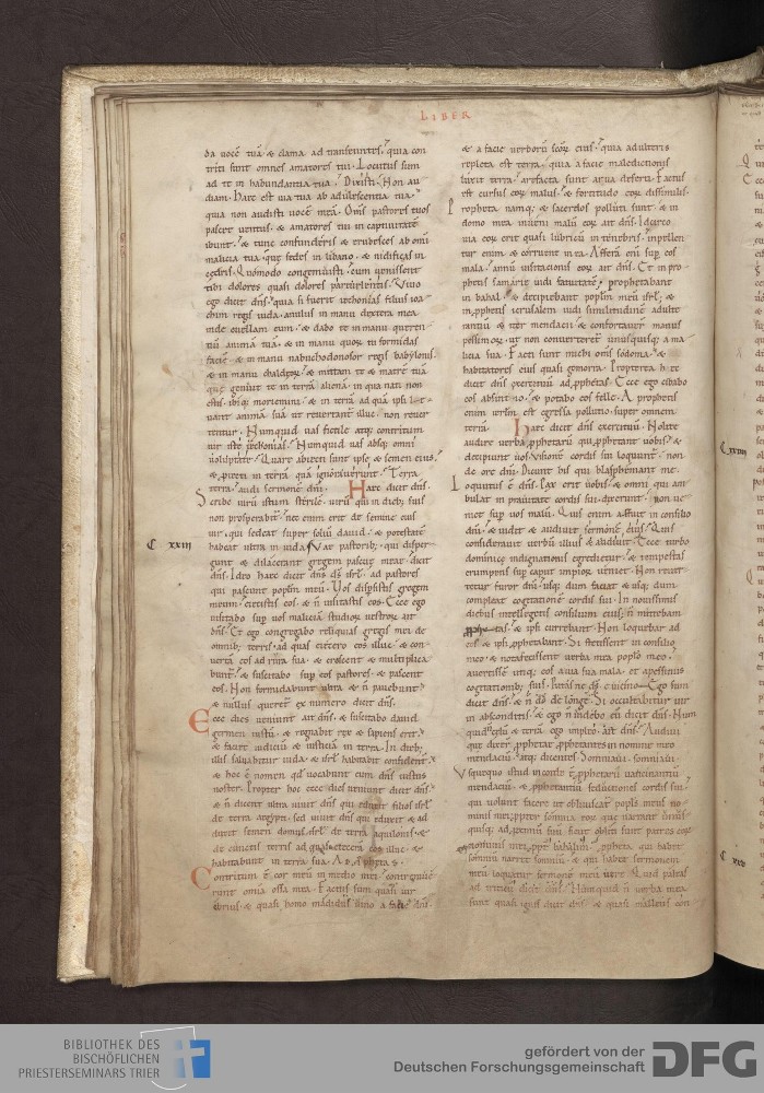 TextGrid Repository (2017). Bibliothek des Bischöflichen Priesterseminars, Hs. 1. Inhalte. Bibliothek des Bischöflichen Priesterseminars Trier Hs. 1. Bibel aus St. Matthias/Altes Testament. Blatt 22v. Blatt 22v. Virtuelles Skriptorium St. Matthias. Bibliothek des Bischöflichen Priesterseminars Trier. https://hdl.handle.net/11378/0000-0006-0DAF-8
