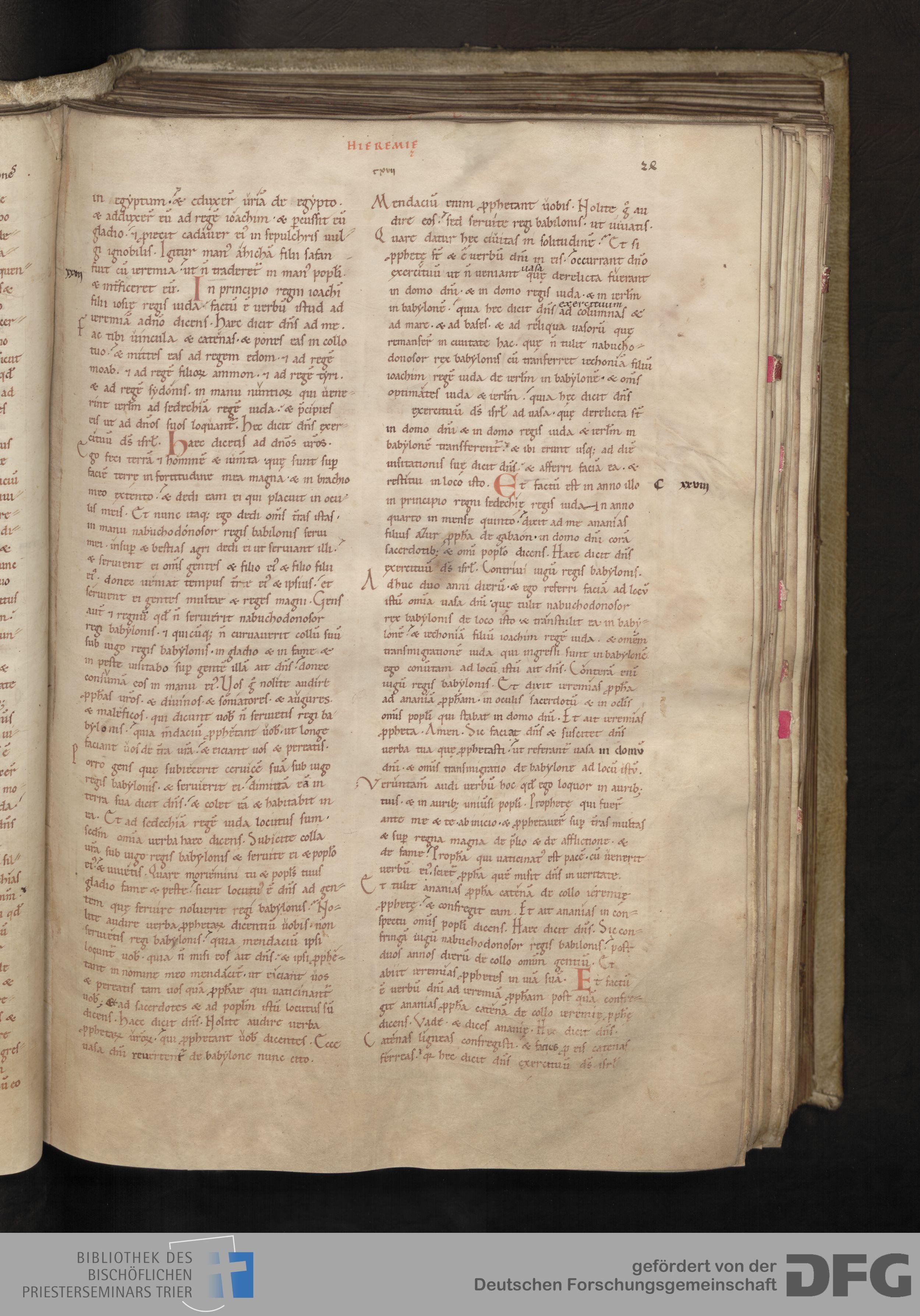 - TextGrid Repository (2017). Bibliothek des Bischöflichen Priesterseminars, Hs. 1. Inhalte. Bibliothek des Bischöflichen Priesterseminars Trier Hs. 1. Bibel aus St. Matthias/Altes Testament. Blatt 24r. Blatt 24r. Virtuelles Skriptorium St. Matthias. Bibliothek des Bischöflichen Priesterseminars Trier. https://hdl.handle.net/11378/0000-0006-0DB5-0