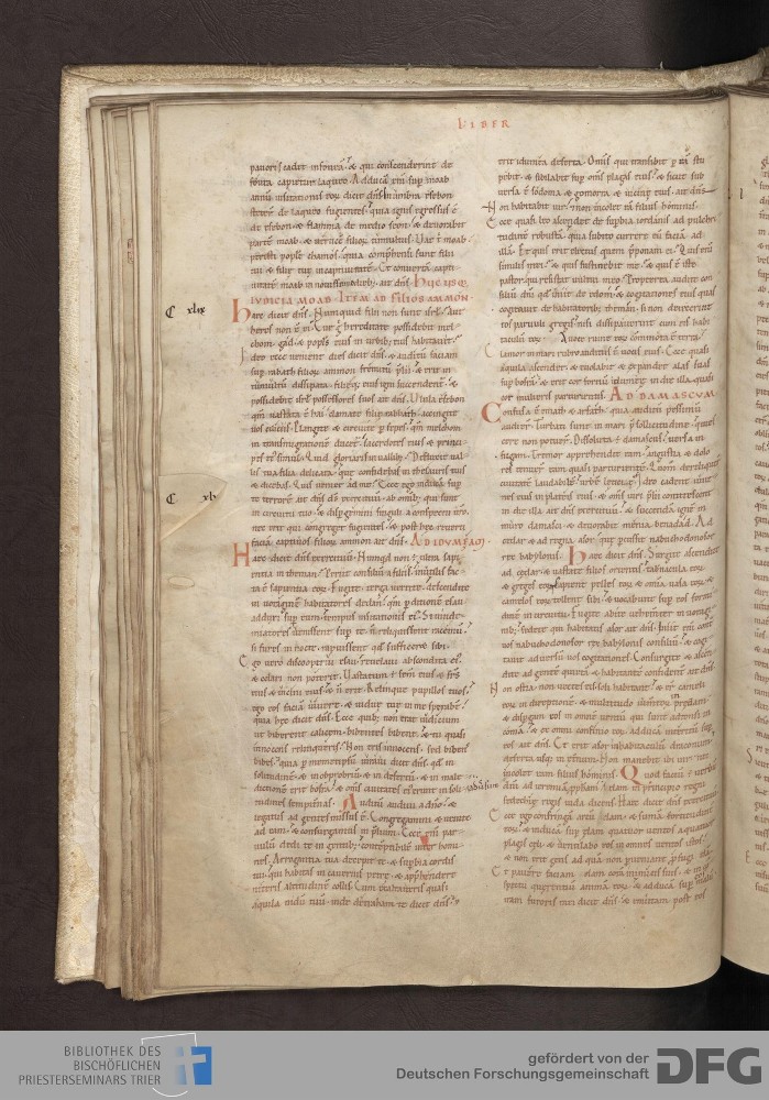 - TextGrid Repository (2017). Bibliothek des Bischöflichen Priesterseminars, Hs. 1. Inhalte. Bibliothek des Bischöflichen Priesterseminars Trier Hs. 1. Bibel aus St. Matthias/Altes Testament. Blatt 30v. Blatt 30v. Virtuelles Skriptorium St. Matthias. Bibliothek des Bischöflichen Priesterseminars Trier. https://hdl.handle.net/11378/0000-0006-0DCF-4