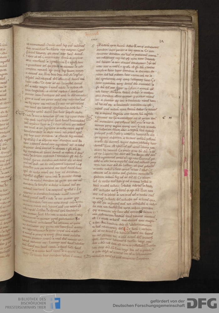 TextGrid Repository (2017). Bibliothek des Bischöflichen Priesterseminars, Hs. 1. Inhalte. Bibliothek des Bischöflichen Priesterseminars Trier Hs. 1. Bibel aus St. Matthias/Altes Testament. Blatt 37r. Blatt 37r. Virtuelles Skriptorium St. Matthias. Bibliothek des Bischöflichen Priesterseminars Trier. https://hdl.handle.net/11378/0000-0006-0DE9-6