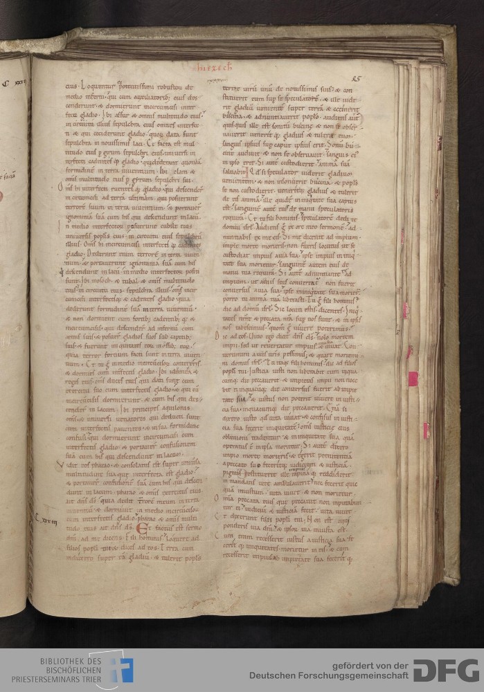 TextGrid Repository (2017). Bibliothek des Bischöflichen Priesterseminars, Hs. 1. Inhalte. Bibliothek des Bischöflichen Priesterseminars Trier Hs. 1. Bibel aus St. Matthias/Altes Testament. Blatt 45r. Blatt 45r. Virtuelles Skriptorium St. Matthias. Bibliothek des Bischöflichen Priesterseminars Trier. https://hdl.handle.net/11378/0000-0006-0E09-2