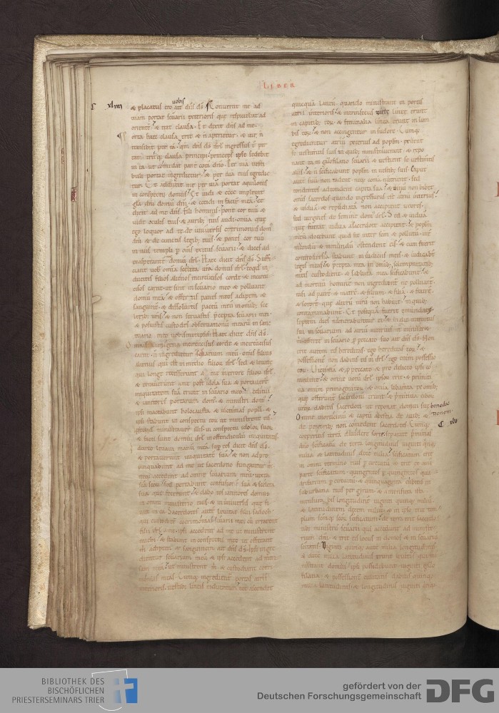 - TextGrid Repository (2017). Bibliothek des Bischöflichen Priesterseminars, Hs. 1. Inhalte. Bibliothek des Bischöflichen Priesterseminars Trier Hs. 1. Bibel aus St. Matthias/Altes Testament. Blatt 49v. Blatt 49v. Virtuelles Skriptorium St. Matthias. Bibliothek des Bischöflichen Priesterseminars Trier. https://hdl.handle.net/11378/0000-0006-0E1B-E