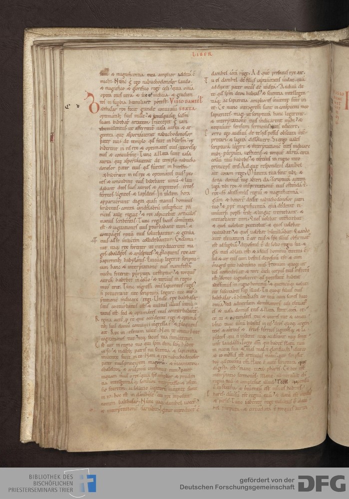 - TextGrid Repository (2017). Bibliothek des Bischöflichen Priesterseminars, Hs. 1. Inhalte. Bibliothek des Bischöflichen Priesterseminars Trier Hs. 1. Bibel aus St. Matthias/Altes Testament. Blatt 54v. Blatt 54v. Virtuelles Skriptorium St. Matthias. Bibliothek des Bischöflichen Priesterseminars Trier. https://hdl.handle.net/11378/0000-0006-0E2F-8