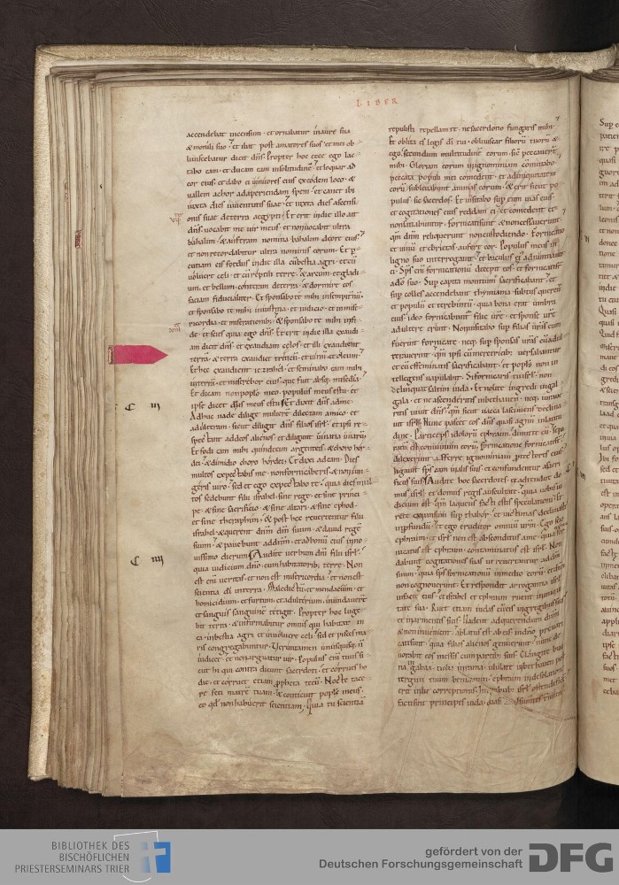 - TextGrid Repository (2017). Bibliothek des Bischöflichen Priesterseminars, Hs. 1. Inhalte. Bibliothek des Bischöflichen Priesterseminars Trier Hs. 1. Bibel aus St. Matthias/Altes Testament. Blatt 59v. Blatt 59v. Virtuelles Skriptorium St. Matthias. Bibliothek des Bischöflichen Priesterseminars Trier. https://hdl.handle.net/11378/0000-0006-0E43-0
