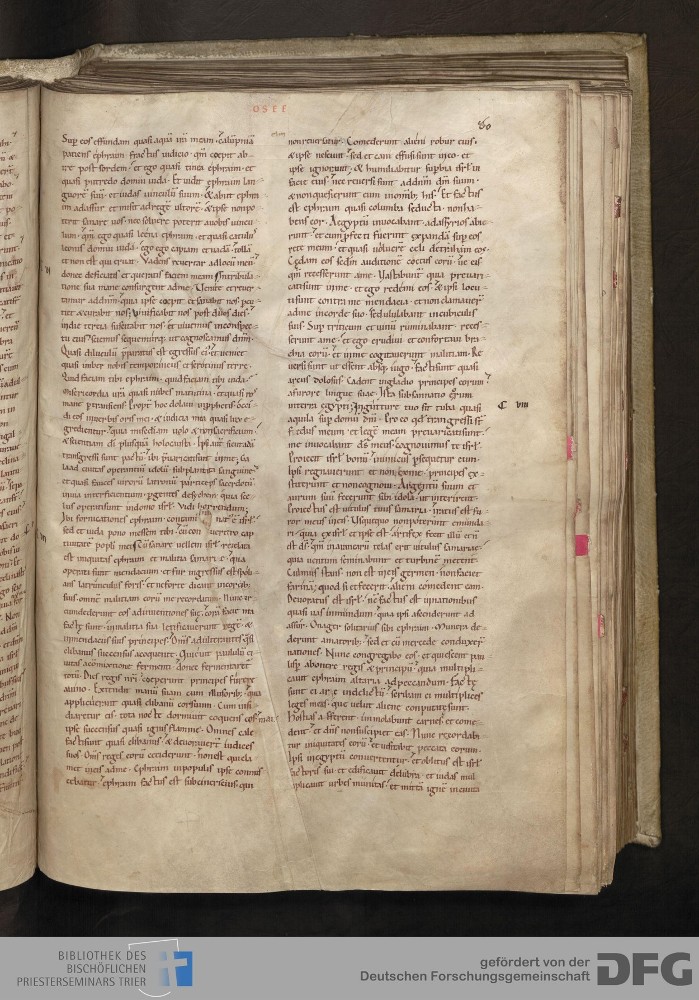 - TextGrid Repository (2017). Bibliothek des Bischöflichen Priesterseminars, Hs. 1. Inhalte. Bibliothek des Bischöflichen Priesterseminars Trier Hs. 1. Bibel aus St. Matthias/Altes Testament. Blatt 60r. Blatt 60r. Virtuelles Skriptorium St. Matthias. Bibliothek des Bischöflichen Priesterseminars Trier. https://hdl.handle.net/11378/0000-0006-0E45-E