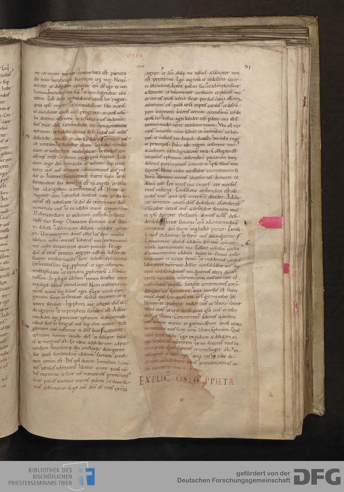 - TextGrid Repository (2017). Bibliothek des Bischöflichen Priesterseminars, Hs. 1. Inhalte. Bibliothek des Bischöflichen Priesterseminars Trier Hs. 1. Bibel aus St. Matthias/Altes Testament. Blatt 61r. Blatt 61r. Virtuelles Skriptorium St. Matthias. Bibliothek des Bischöflichen Priesterseminars Trier. https://hdl.handle.net/11378/0000-0006-0E49-A