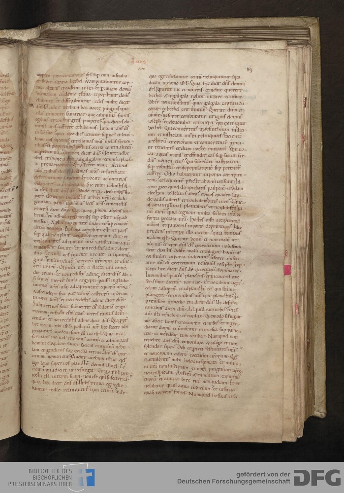 - TextGrid Repository (2017). Bibliothek des Bischöflichen Priesterseminars, Hs. 1. Inhalte. Bibliothek des Bischöflichen Priesterseminars Trier Hs. 1. Bibel aus St. Matthias/Altes Testament. Blatt 63r. Blatt 63r. Virtuelles Skriptorium St. Matthias. Bibliothek des Bischöflichen Priesterseminars Trier. https://hdl.handle.net/11378/0000-0006-0E51-0