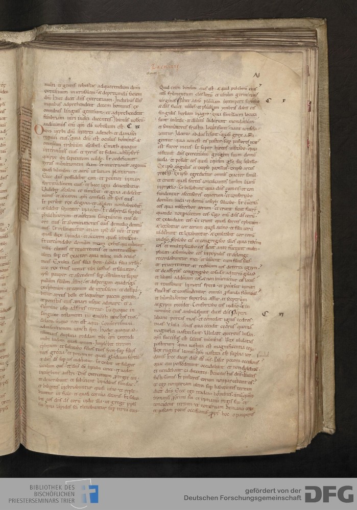 - TextGrid Repository (2017). Bibliothek des Bischöflichen Priesterseminars, Hs. 1. Inhalte. Bibliothek des Bischöflichen Priesterseminars Trier Hs. 1. Bibel aus St. Matthias/Altes Testament. Blatt 71r. Blatt 71r. Virtuelles Skriptorium St. Matthias. Bibliothek des Bischöflichen Priesterseminars Trier. https://hdl.handle.net/11378/0000-0006-0E71-C