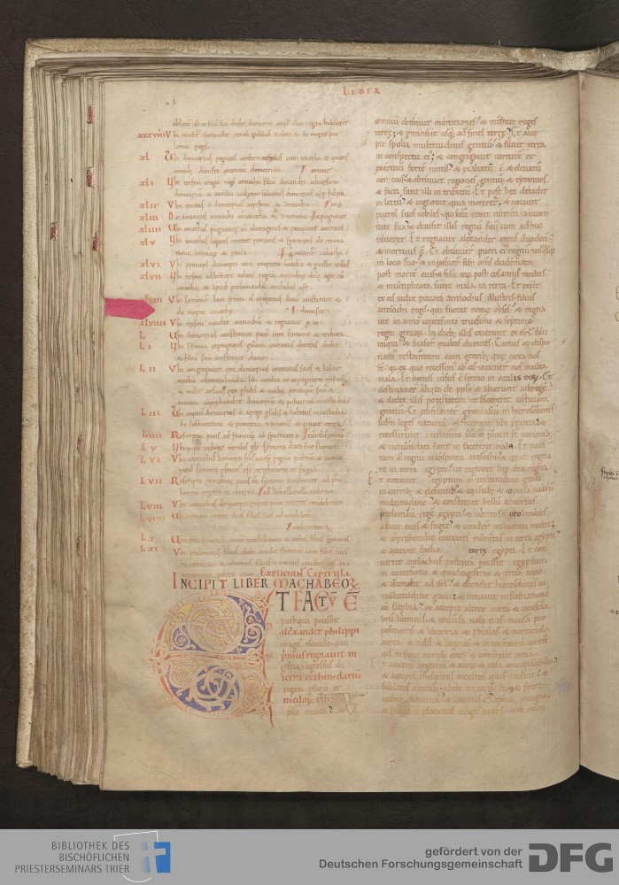 - TextGrid Repository (2017). Bibliothek des Bischöflichen Priesterseminars, Hs. 1. Inhalte. Bibliothek des Bischöflichen Priesterseminars Trier Hs. 1. Bibel aus St. Matthias/Altes Testament. Blatt 87v. Blatt 87v. Virtuelles Skriptorium St. Matthias. Bibliothek des Bischöflichen Priesterseminars Trier. https://hdl.handle.net/11378/0000-0006-0EB3-1