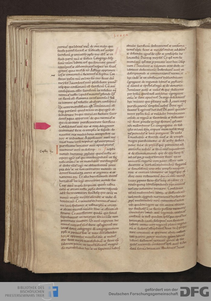 TextGrid Repository (2017). Bibliothek des Bischöflichen Priesterseminars, Hs. 1. Inhalte. Bibliothek des Bischöflichen Priesterseminars Trier Hs. 1. Bibel aus St. Matthias/Altes Testament. Blatt 99v. Blatt 99v. Virtuelles Skriptorium St. Matthias. Bibliothek des Bischöflichen Priesterseminars Trier. https://hdl.handle.net/11378/0000-0006-0EE3-B