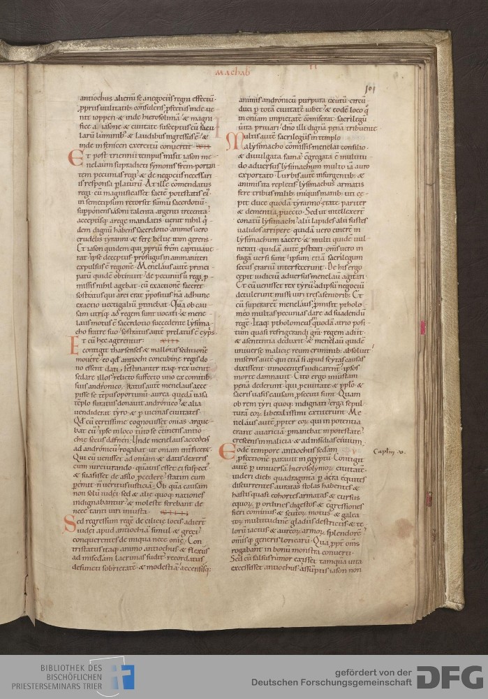 - TextGrid Repository (2017). Bibliothek des Bischöflichen Priesterseminars, Hs. 1. Inhalte. Bibliothek des Bischöflichen Priesterseminars Trier Hs. 1. Bibel aus St. Matthias/Altes Testament. Blatt 101r. Blatt 101r. Virtuelles Skriptorium St. Matthias. Bibliothek des Bischöflichen Priesterseminars Trier. https://hdl.handle.net/11378/0000-0006-0EE9-5