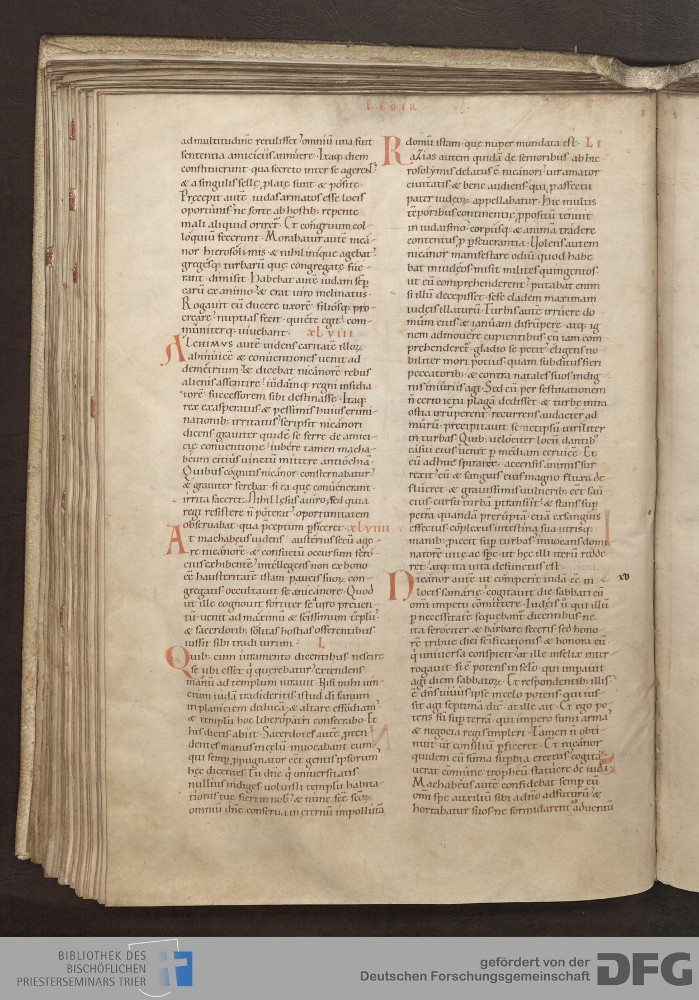 - TextGrid Repository (2017). Bibliothek des Bischöflichen Priesterseminars, Hs. 1. Inhalte. Bibliothek des Bischöflichen Priesterseminars Trier Hs. 1. Bibel aus St. Matthias/Altes Testament. Blatt 106v. Blatt 106v. Virtuelles Skriptorium St. Matthias. Bibliothek des Bischöflichen Priesterseminars Trier. https://hdl.handle.net/11378/0000-0006-0EFF-D