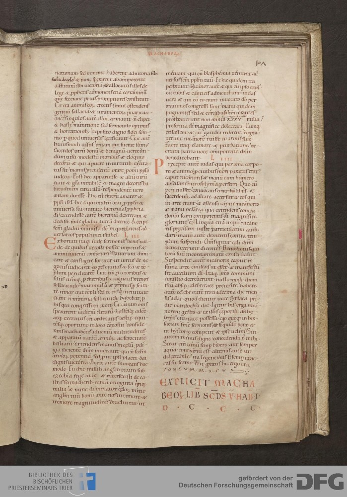 - TextGrid Repository (2017). Bibliothek des Bischöflichen Priesterseminars, Hs. 1. Inhalte. Bibliothek des Bischöflichen Priesterseminars Trier Hs. 1. Bibel aus St. Matthias/Altes Testament. Blatt 107r. Blatt 107r. Virtuelles Skriptorium St. Matthias. Bibliothek des Bischöflichen Priesterseminars Trier. https://hdl.handle.net/11378/0000-0006-0F01-9