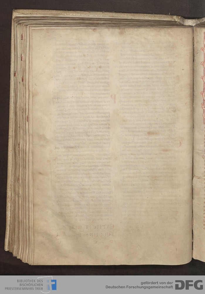 TextGrid Repository (2017). Bibliothek des Bischöflichen Priesterseminars, Hs. 1. Inhalte. Bibliothek des Bischöflichen Priesterseminars Trier Hs. 1. Bibel aus St. Matthias/Altes Testament. Blatt 107v. Blatt 107v. Virtuelles Skriptorium St. Matthias. Bibliothek des Bischöflichen Priesterseminars Trier. https://hdl.handle.net/11378/0000-0006-0F03-7