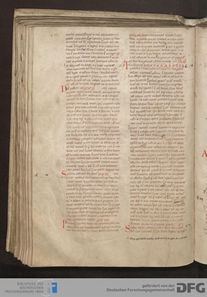 - TextGrid Repository (2017). Bibliothek des Bischöflichen Priesterseminars, Hs. 1. Inhalte. Bibliothek des Bischöflichen Priesterseminars Trier Hs. 1. Bibel aus St. Matthias/Altes Testament. Blatt 110v. Blatt 110v. Virtuelles Skriptorium St. Matthias. Bibliothek des Bischöflichen Priesterseminars Trier. https://hdl.handle.net/11378/0000-0006-0F0F-B