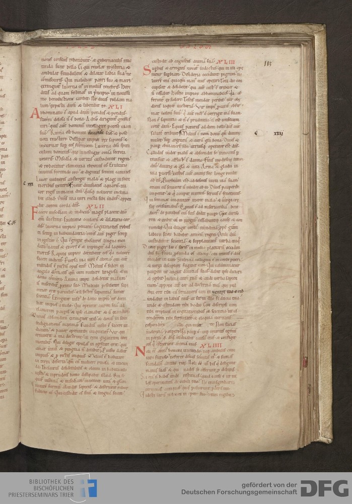 - TextGrid Repository (2017). Bibliothek des Bischöflichen Priesterseminars, Hs. 1. Inhalte. Bibliothek des Bischöflichen Priesterseminars Trier Hs. 1. Bibel aus St. Matthias/Altes Testament. Blatt 113r. Blatt 113r. Virtuelles Skriptorium St. Matthias. Bibliothek des Bischöflichen Priesterseminars Trier. https://hdl.handle.net/11378/0000-0006-0F19-F