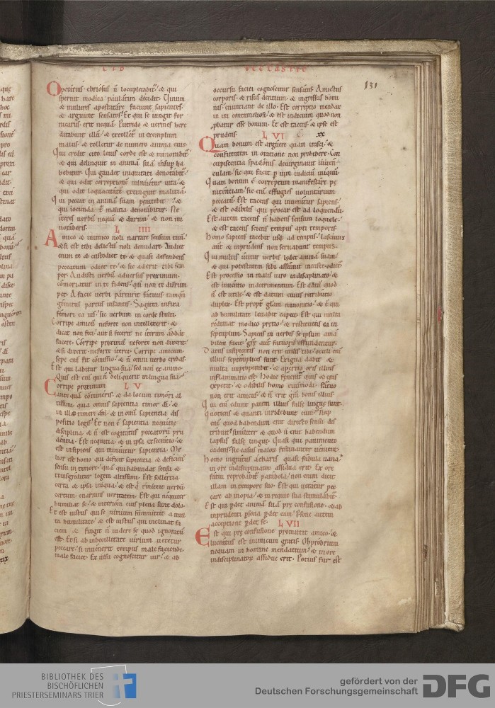 - TextGrid Repository (2017). Bibliothek des Bischöflichen Priesterseminars, Hs. 1. Inhalte. Bibliothek des Bischöflichen Priesterseminars Trier Hs. 1. Bibel aus St. Matthias/Altes Testament. Blatt 131r. Blatt 131r. Virtuelles Skriptorium St. Matthias. Bibliothek des Bischöflichen Priesterseminars Trier. https://hdl.handle.net/11378/0000-0006-0F61-D