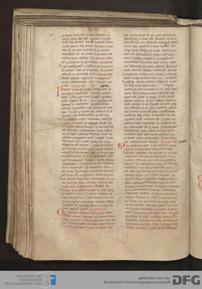 - TextGrid Repository (2017). Bibliothek des Bischöflichen Priesterseminars, Hs. 1. Inhalte. Bibliothek des Bischöflichen Priesterseminars Trier Hs. 1. Bibel aus St. Matthias/Altes Testament. Blatt 133v. Blatt 133v. Virtuelles Skriptorium St. Matthias. Bibliothek des Bischöflichen Priesterseminars Trier. https://hdl.handle.net/11378/0000-0006-0F6B-3
