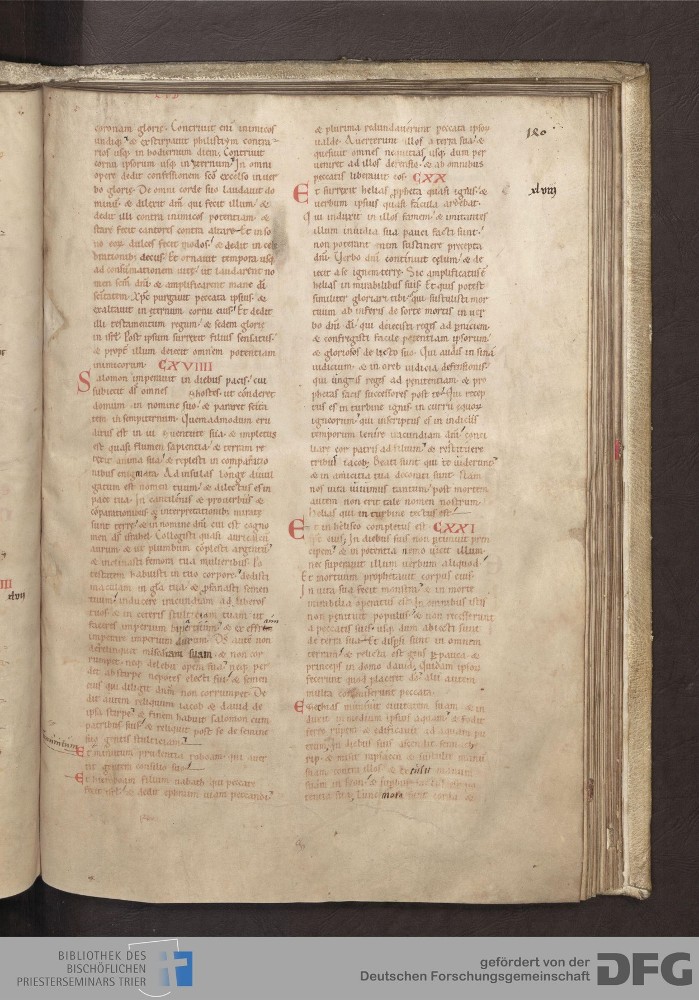- TextGrid Repository (2017). Bibliothek des Bischöflichen Priesterseminars, Hs. 1. Inhalte. Bibliothek des Bischöflichen Priesterseminars Trier Hs. 1. Bibel aus St. Matthias/Altes Testament. Blatt 140r. Blatt 140r. Virtuelles Skriptorium St. Matthias. Bibliothek des Bischöflichen Priesterseminars Trier. https://hdl.handle.net/11378/0000-0006-0F85-4