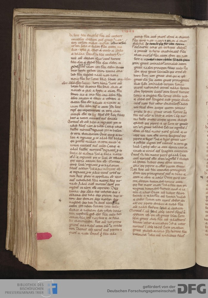 - TextGrid Repository (2017). Bibliothek des Bischöflichen Priesterseminars, Hs. 1. Inhalte. Bibliothek des Bischöflichen Priesterseminars Trier Hs. 1. Bibel aus St. Matthias/Altes Testament. Blatt 142v. Blatt 142v. Virtuelles Skriptorium St. Matthias. Bibliothek des Bischöflichen Priesterseminars Trier. https://hdl.handle.net/11378/0000-0006-0F8F-A