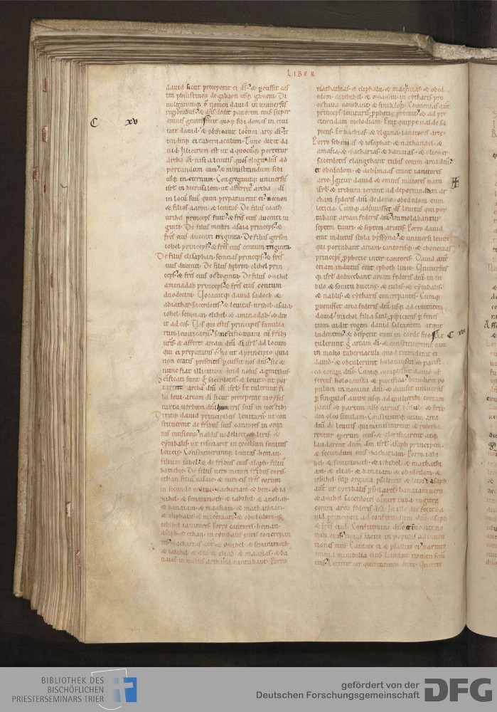- TextGrid Repository (2017). Bibliothek des Bischöflichen Priesterseminars, Hs. 1. Inhalte. Bibliothek des Bischöflichen Priesterseminars Trier Hs. 1. Bibel aus St. Matthias/Altes Testament. Blatt 147v. Blatt 147v. Virtuelles Skriptorium St. Matthias. Bibliothek des Bischöflichen Priesterseminars Trier. https://hdl.handle.net/11378/0000-0006-0FA3-2