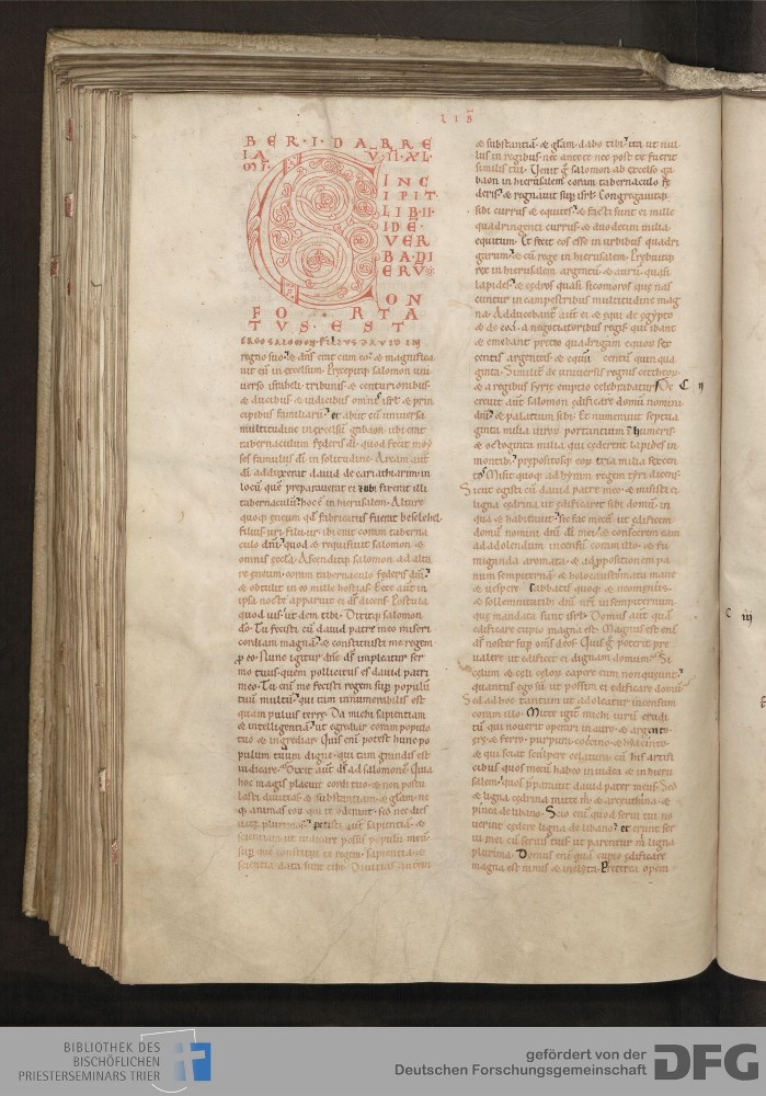 - TextGrid Repository (2017). Bibliothek des Bischöflichen Priesterseminars, Hs. 1. Inhalte. Bibliothek des Bischöflichen Priesterseminars Trier Hs. 1. Bibel aus St. Matthias/Altes Testament. Blatt 152v. Blatt 152v. Virtuelles Skriptorium St. Matthias. Bibliothek des Bischöflichen Priesterseminars Trier. https://hdl.handle.net/11378/0000-0006-0FB7-C