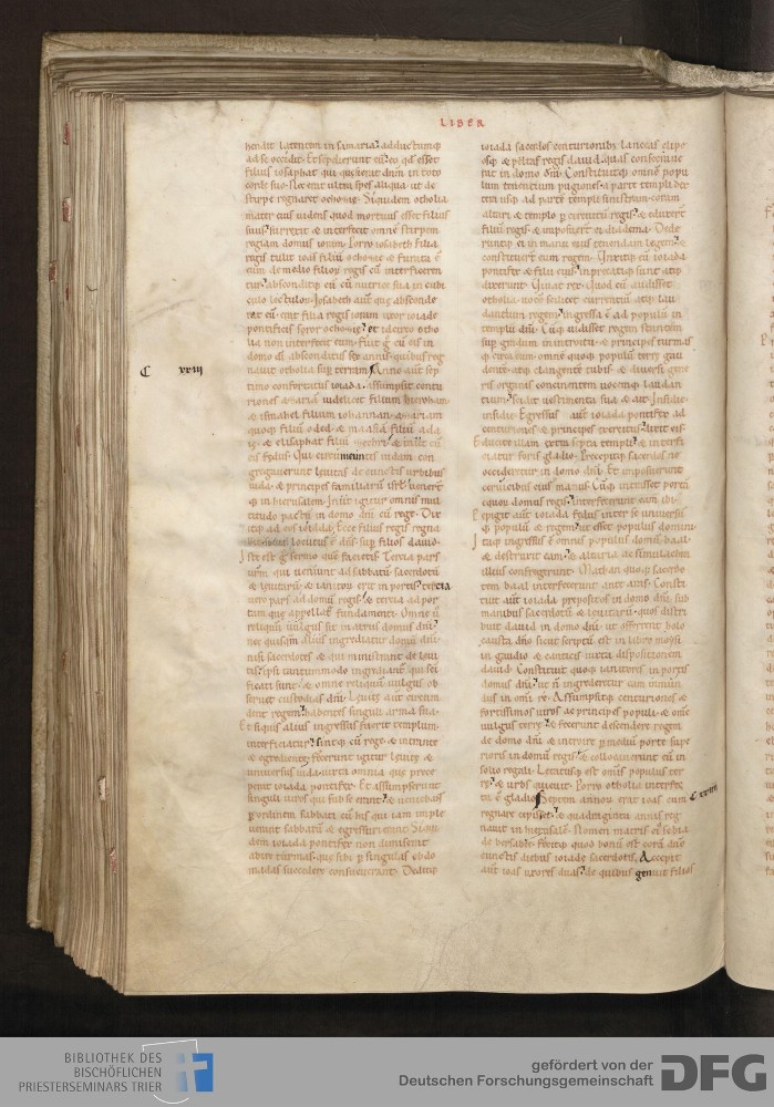 - TextGrid Repository (2017). Bibliothek des Bischöflichen Priesterseminars, Hs. 1. Inhalte. Bibliothek des Bischöflichen Priesterseminars Trier Hs. 1. Bibel aus St. Matthias/Altes Testament. Blatt 159v. Blatt 159v. Virtuelles Skriptorium St. Matthias. Bibliothek des Bischöflichen Priesterseminars Trier. https://hdl.handle.net/11378/0000-0006-0FD3-C