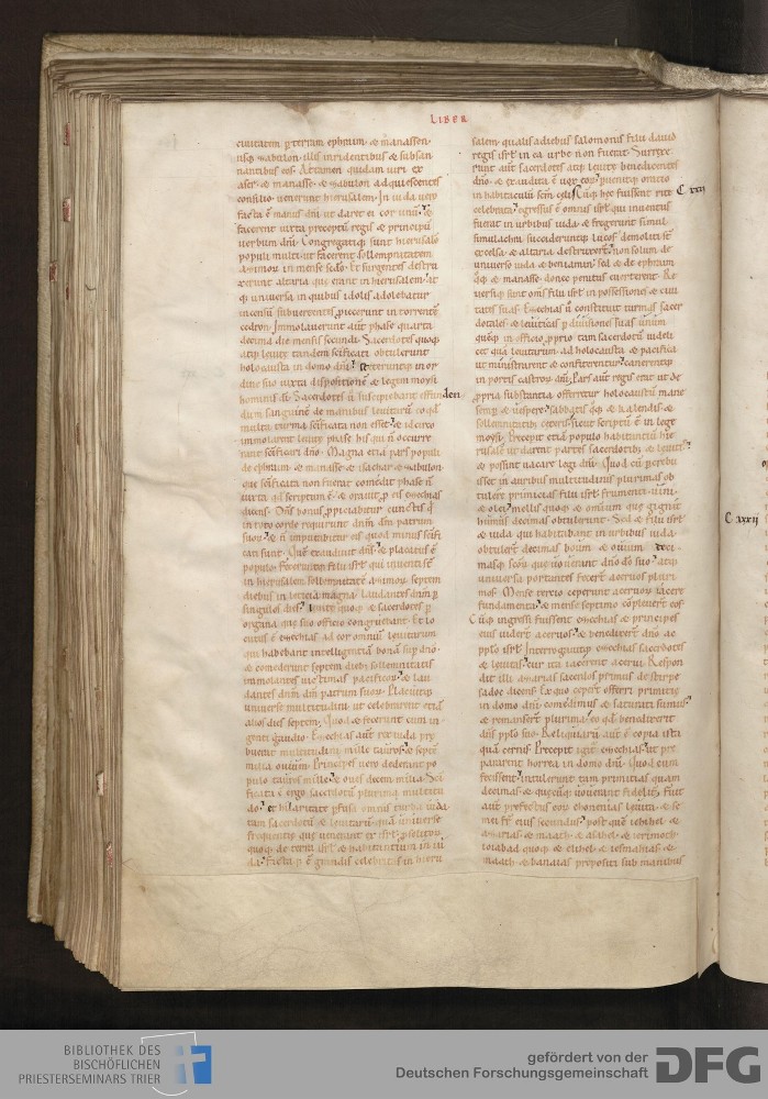 - TextGrid Repository (2017). Bibliothek des Bischöflichen Priesterseminars, Hs. 1. Inhalte. Bibliothek des Bischöflichen Priesterseminars Trier Hs. 1. Bibel aus St. Matthias/Altes Testament. Blatt 162v. Blatt 162v. Virtuelles Skriptorium St. Matthias. Bibliothek des Bischöflichen Priesterseminars Trier. https://hdl.handle.net/11378/0000-0006-0FDF-0