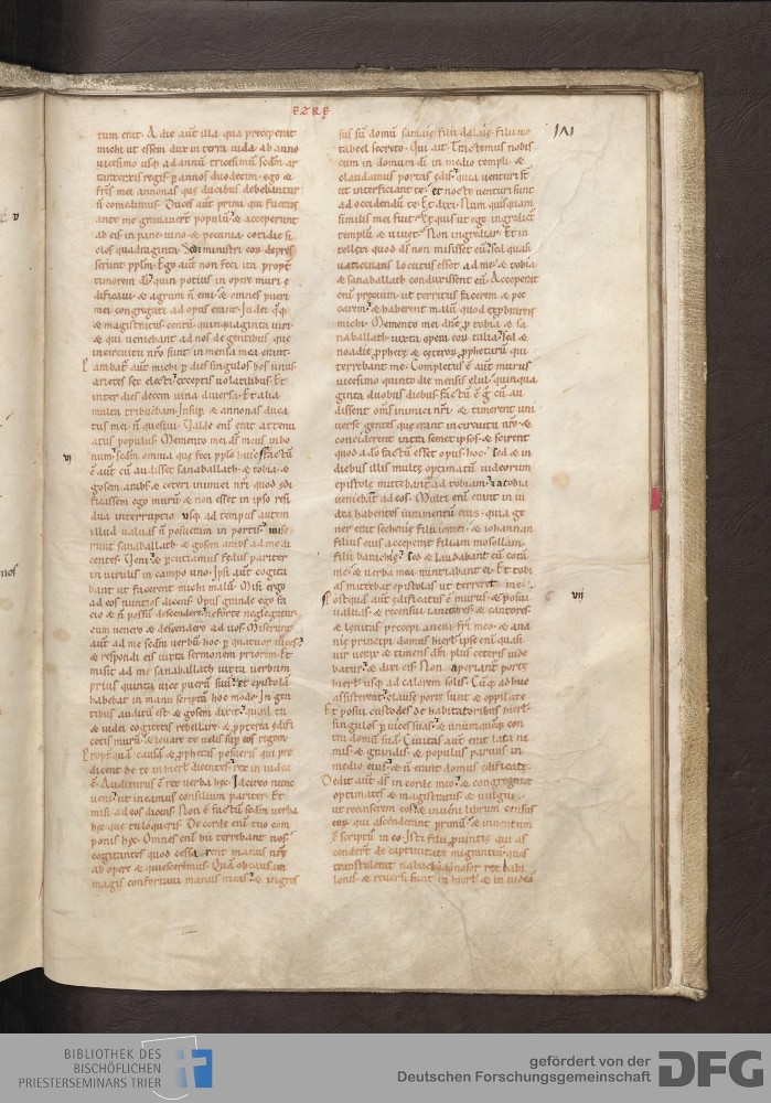 - TextGrid Repository (2017). Bibliothek des Bischöflichen Priesterseminars, Hs. 1. Inhalte. Bibliothek des Bischöflichen Priesterseminars Trier Hs. 1. Bibel aus St. Matthias/Altes Testament. Blatt 171r. Blatt 171r. Virtuelles Skriptorium St. Matthias. Bibliothek des Bischöflichen Priesterseminars Trier. https://hdl.handle.net/11378/0000-0006-1001-6