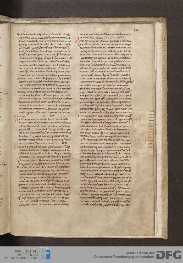 - TextGrid Repository (2017). Bibliothek des Bischöflichen Priesterseminars, Hs. 1. Inhalte. Bibliothek des Bischöflichen Priesterseminars Trier Hs. 1. Bibel aus St. Matthias/Altes Testament. Blatt 180r. Blatt 180r. Virtuelles Skriptorium St. Matthias. Bibliothek des Bischöflichen Priesterseminars Trier. https://hdl.handle.net/11378/0000-0006-1025-E