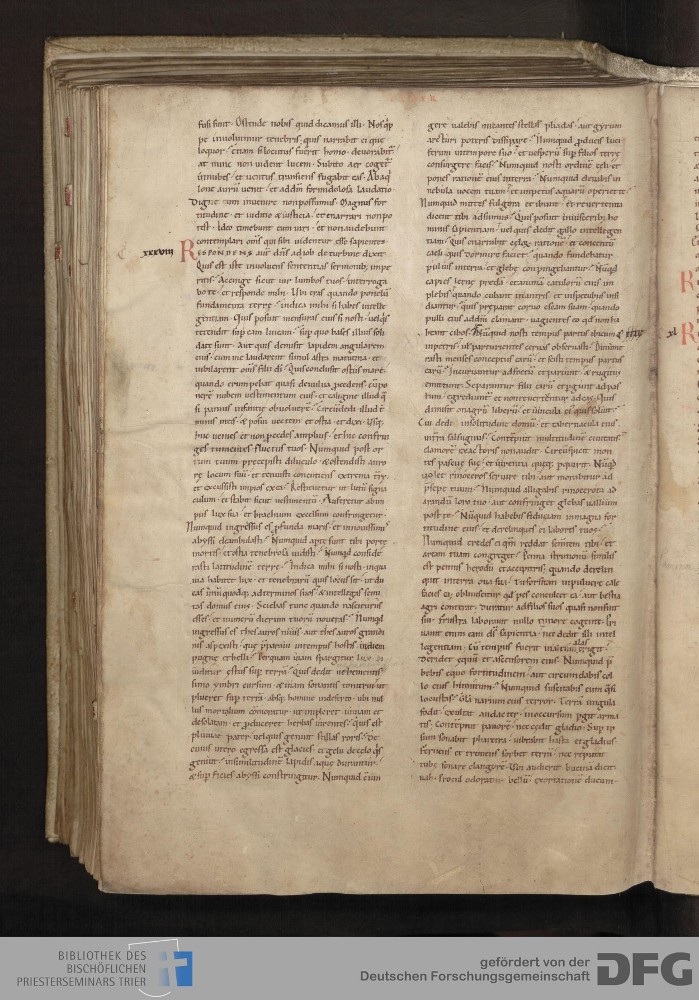 - TextGrid Repository (2017). Bibliothek des Bischöflichen Priesterseminars, Hs. 1. Inhalte. Bibliothek des Bischöflichen Priesterseminars Trier Hs. 1. Bibel aus St. Matthias/Altes Testament. Blatt 182v. Blatt 182v. Virtuelles Skriptorium St. Matthias. Bibliothek des Bischöflichen Priesterseminars Trier. https://hdl.handle.net/11378/0000-0006-102F-4
