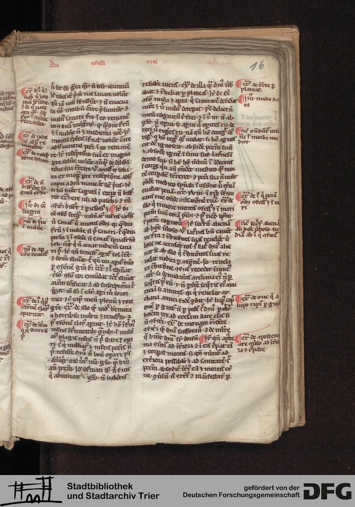 - TextGrid Repository (2017). Stadtbibliothek und Stadtarchiv Trier, Hs. 226/1386 8°: Sammelhandschrift. Inhalte. Stadtbibliothek und Stadtarchiv Trier Hs. 226/1386 8°. Summa abstinentiae, Predigthilfen nach Stichworten alphabetisch geordnet. Blatt 16r. Blatt 16r. Virtuelles Skriptorium St. Matthias. Stadtbibliothek und Stadtarchiv Trier. https://hdl.handle.net/11378/0000-0008-3338-0