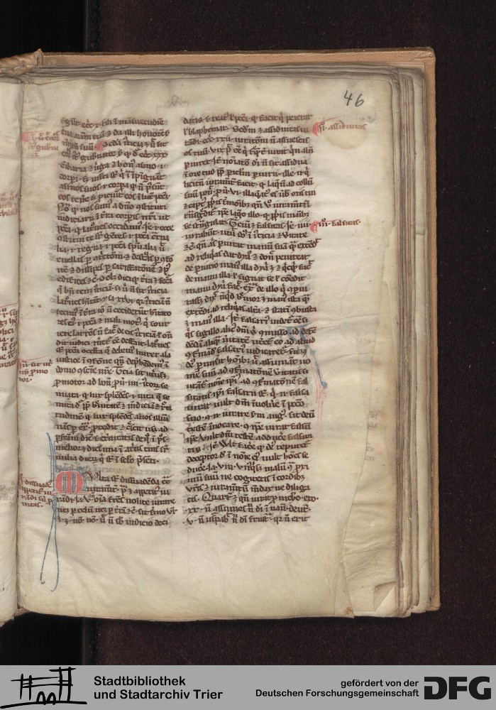 - TextGrid Repository (2017). Stadtbibliothek und Stadtarchiv Trier, Hs. 226/1386 8°: Sammelhandschrift. Inhalte. Stadtbibliothek und Stadtarchiv Trier Hs. 226/1386 8°. Summa abstinentiae, Predigthilfen nach Stichworten alphabetisch geordnet. Blatt 46r. Blatt 46r. Virtuelles Skriptorium St. Matthias. Stadtbibliothek und Stadtarchiv Trier. https://hdl.handle.net/11378/0000-0008-33B0-7