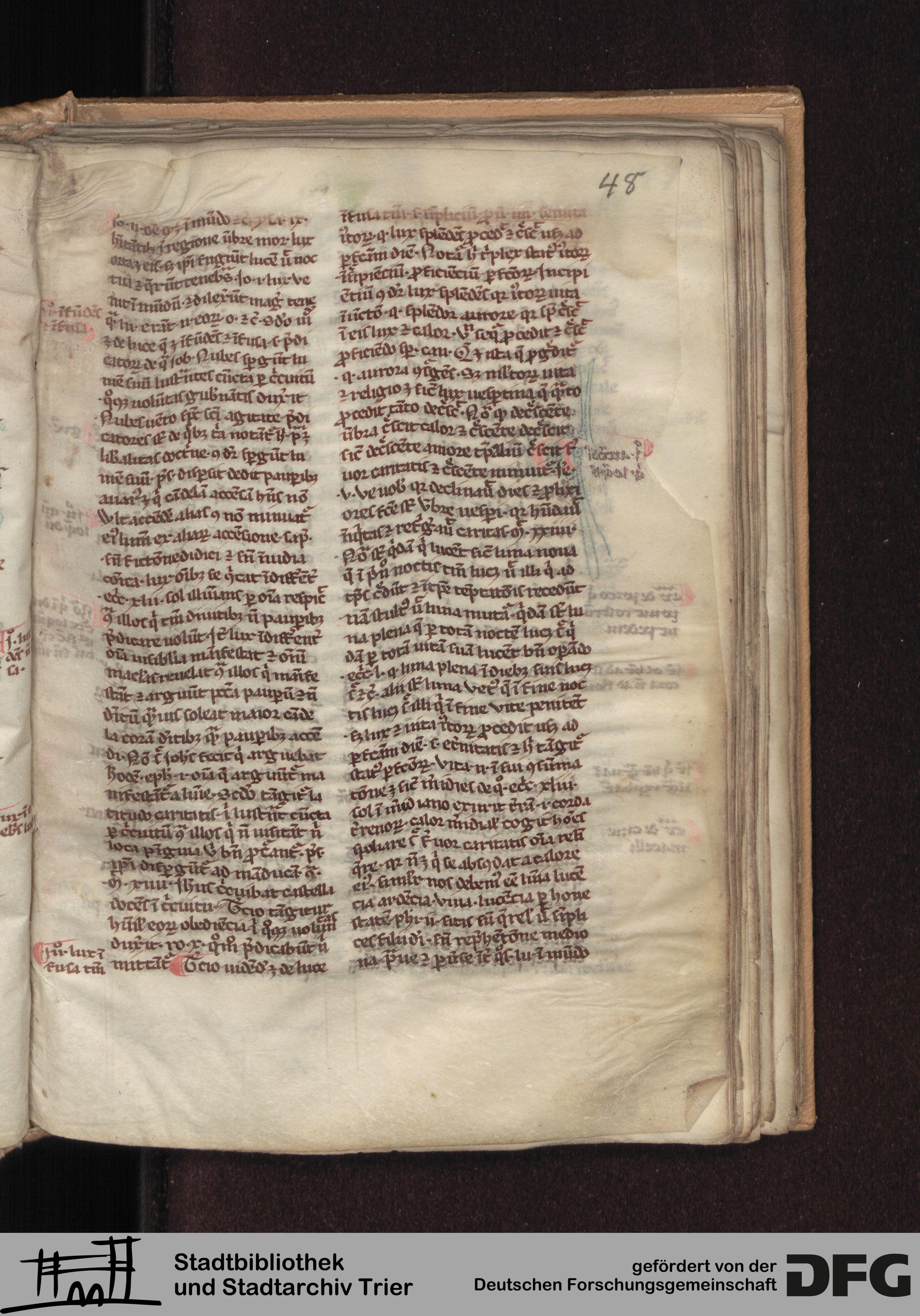 - TextGrid Repository (2017). Stadtbibliothek und Stadtarchiv Trier, Hs. 226/1386 8°: Sammelhandschrift. Inhalte. Stadtbibliothek und Stadtarchiv Trier Hs. 226/1386 8°. Summa abstinentiae, Predigthilfen nach Stichworten alphabetisch geordnet. Blatt 48r. Blatt 48r. Virtuelles Skriptorium St. Matthias. Stadtbibliothek und Stadtarchiv Trier. https://hdl.handle.net/11378/0000-0008-33B8-F