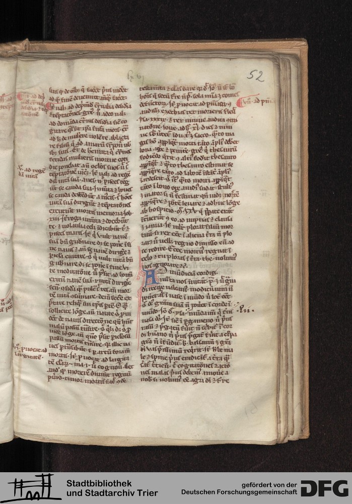 - TextGrid Repository (2017). Stadtbibliothek und Stadtarchiv Trier, Hs. 226/1386 8°: Sammelhandschrift. Inhalte. Stadtbibliothek und Stadtarchiv Trier Hs. 226/1386 8°. Summa abstinentiae, Predigthilfen nach Stichworten alphabetisch geordnet. Blatt 52r. Blatt 52r. Virtuelles Skriptorium St. Matthias. Stadtbibliothek und Stadtarchiv Trier. https://hdl.handle.net/11378/0000-0008-33C8-D