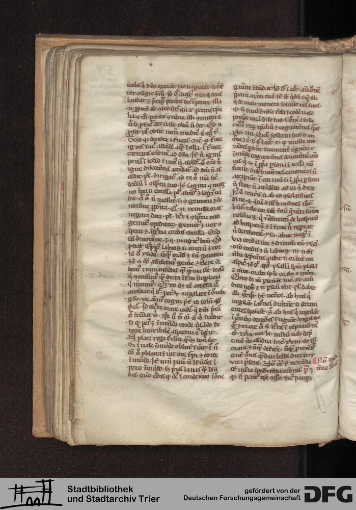 - TextGrid Repository (2017). Stadtbibliothek und Stadtarchiv Trier, Hs. 226/1386 8°: Sammelhandschrift. Inhalte. Stadtbibliothek und Stadtarchiv Trier Hs. 226/1386 8°. Summa abstinentiae, Predigthilfen nach Stichworten alphabetisch geordnet. Blatt 59v. Blatt 59v. Virtuelles Skriptorium St. Matthias. Stadtbibliothek und Stadtarchiv Trier. https://hdl.handle.net/11378/0000-0008-33E6-B