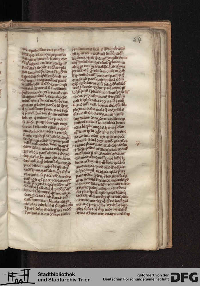 - TextGrid Repository (2017). Stadtbibliothek und Stadtarchiv Trier, Hs. 226/1386 8°: Sammelhandschrift. Inhalte. Stadtbibliothek und Stadtarchiv Trier Hs. 226/1386 8°. Summa abstinentiae, Predigthilfen nach Stichworten alphabetisch geordnet. Blatt 64r. Blatt 64r. Virtuelles Skriptorium St. Matthias. Stadtbibliothek und Stadtarchiv Trier. https://hdl.handle.net/11378/0000-0008-33F8-7