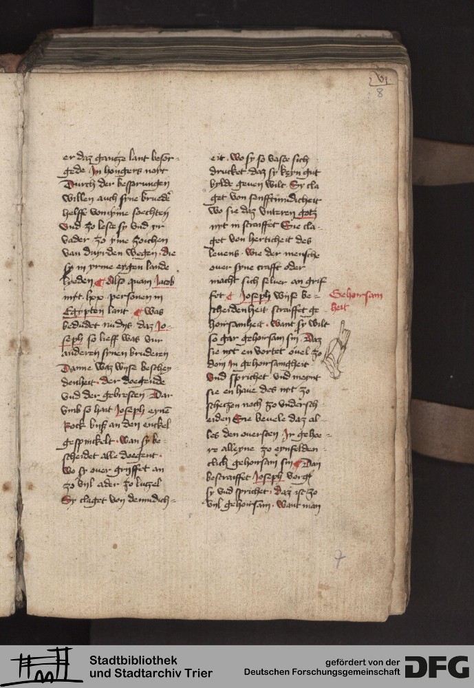 - TextGrid Repository (2017). Stadtbibliothek und Stadtarchiv Trier, 814/1340 4°: Sammelhandschrift. Inhalte. Stadtbibliothek und Stadtarchiv Trier Hs. 814/1340 4°. Dialog über die Kardinaltugenden. Blatt 7r. Blatt 7r. Virtuelles Skriptorium St. Matthias. Stadtbibliothek und Stadtarchiv Trier. https://hdl.handle.net/11378/0000-000A-01E7-0