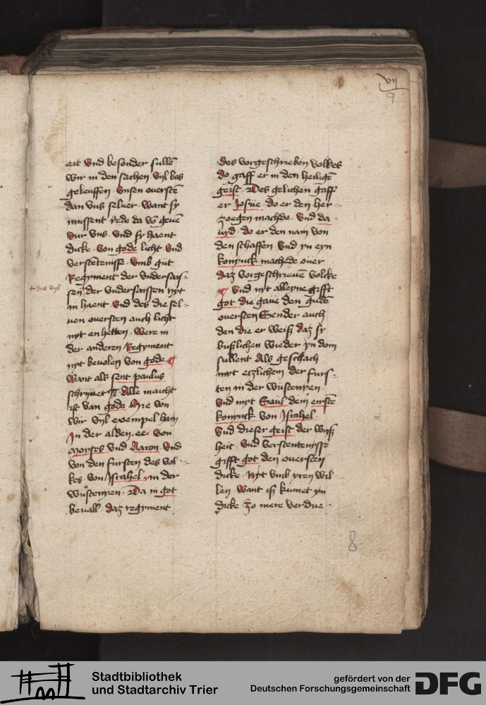 - TextGrid Repository (2017). Stadtbibliothek und Stadtarchiv Trier, 814/1340 4°: Sammelhandschrift. Inhalte. Stadtbibliothek und Stadtarchiv Trier Hs. 814/1340 4°. Dialog über die Kardinaltugenden. Blatt 8r. Blatt 8r. Virtuelles Skriptorium St. Matthias. Stadtbibliothek und Stadtarchiv Trier. https://hdl.handle.net/11378/0000-000A-01EB-C