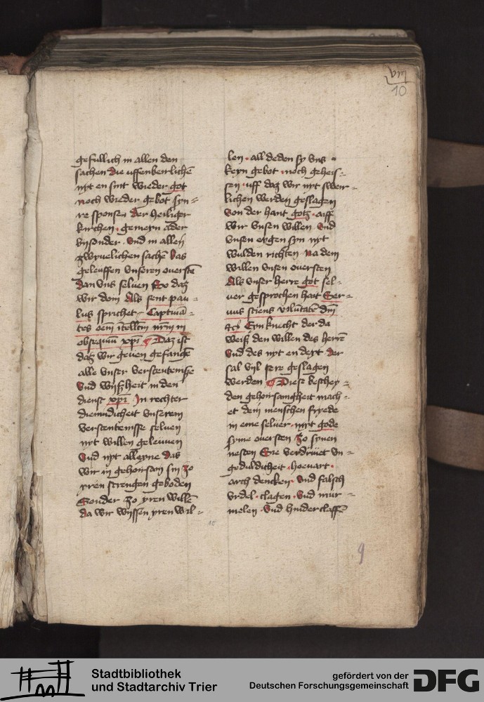 - TextGrid Repository (2017). Stadtbibliothek und Stadtarchiv Trier, 814/1340 4°: Sammelhandschrift. Inhalte. Stadtbibliothek und Stadtarchiv Trier Hs. 814/1340 4°. Dialog über die Kardinaltugenden. Blatt 9r. Blatt 9r. Virtuelles Skriptorium St. Matthias. Stadtbibliothek und Stadtarchiv Trier. https://hdl.handle.net/11378/0000-000A-01EF-8