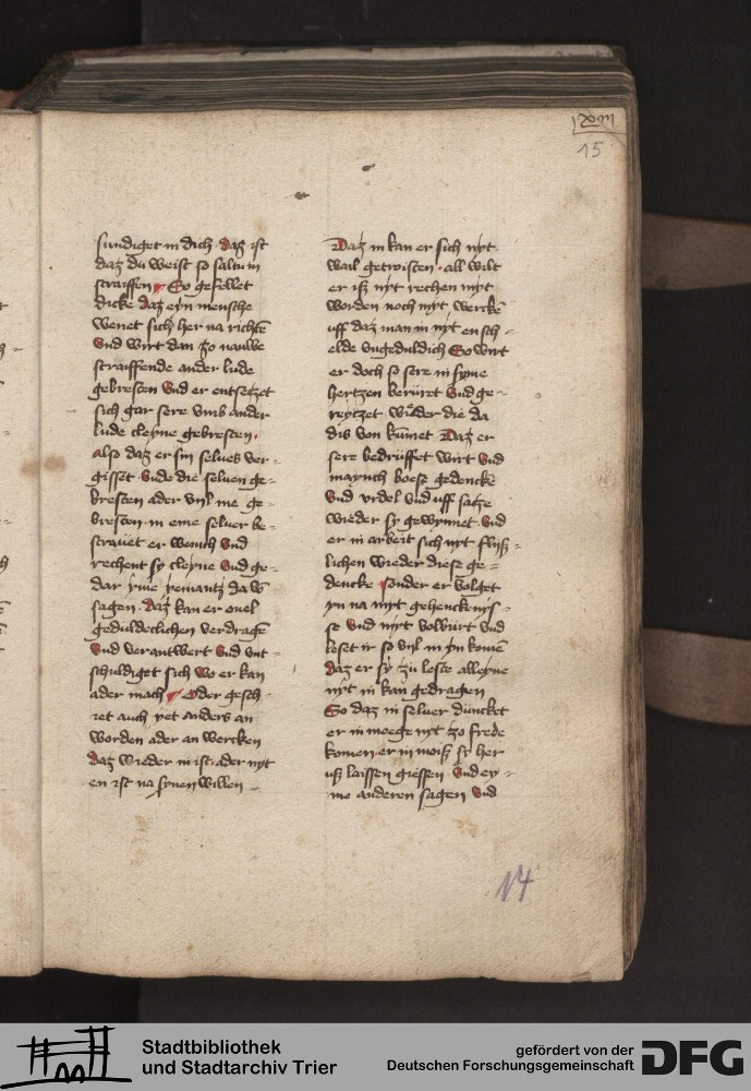 - TextGrid Repository (2017). Stadtbibliothek und Stadtarchiv Trier, 814/1340 4°: Sammelhandschrift. Inhalte. Stadtbibliothek und Stadtarchiv Trier Hs. 814/1340 4°. Dialog über die Kardinaltugenden. Blatt 14r. Blatt 14r. Virtuelles Skriptorium St. Matthias. Stadtbibliothek und Stadtarchiv Trier. https://hdl.handle.net/11378/0000-000A-0203-0