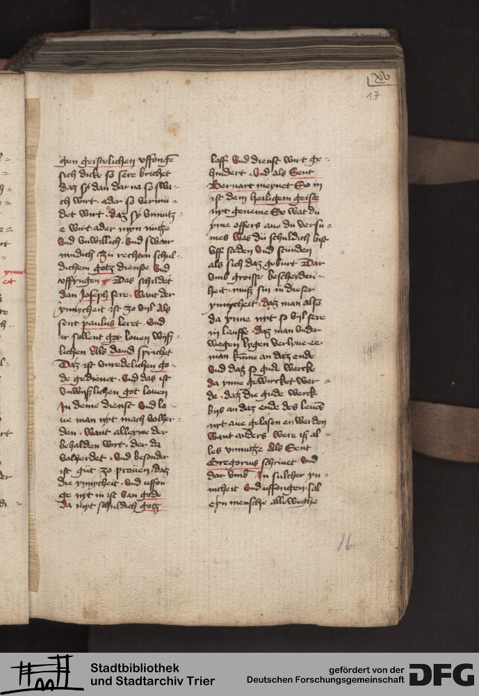 - TextGrid Repository (2017). Stadtbibliothek und Stadtarchiv Trier, 814/1340 4°: Sammelhandschrift. Inhalte. Stadtbibliothek und Stadtarchiv Trier Hs. 814/1340 4°. Dialog über die Kardinaltugenden. Blatt 16r. Blatt 16r. Virtuelles Skriptorium St. Matthias. Stadtbibliothek und Stadtarchiv Trier. https://hdl.handle.net/11378/0000-000A-020B-8