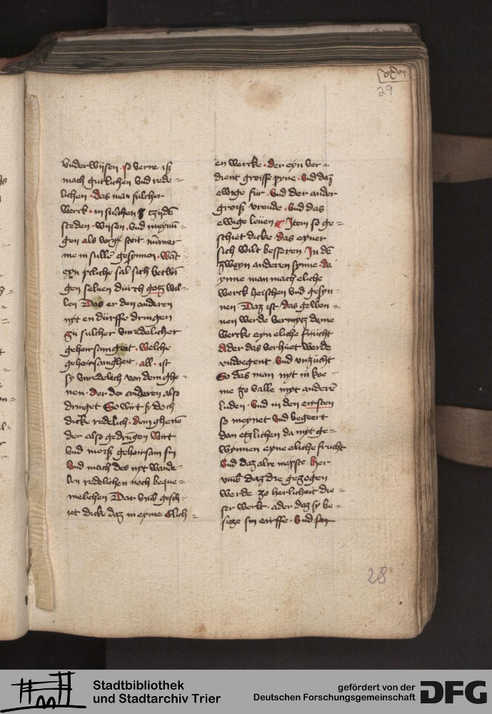 TextGrid Repository (2017). Stadtbibliothek und Stadtarchiv Trier, 814/1340 4°: Sammelhandschrift. Inhalte. Stadtbibliothek und Stadtarchiv Trier Hs. 814/1340 4°. Dialog über die Kardinaltugenden. Blatt 28r. Blatt 28r. Virtuelles Skriptorium St. Matthias. Stadtbibliothek und Stadtarchiv Trier. https://hdl.handle.net/11378/0000-000A-023B-2